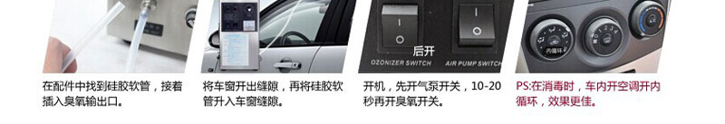 4:禁止将臭氧机放在消毒区内工作,为了工作的安全,设备应有单独工作区,再用硅胶管将臭氧气体输送到消毒或化学反应区。