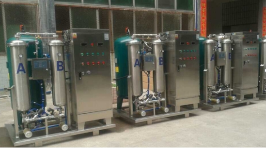 本系统配套产量500g/h的臭氧发生器1台,采用氧气源,外置无油空压机、吸附干燥机、冷干机、精密过滤器、储气罐、制氧机、氧气储气罐等组成。